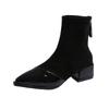 Fashion Winter New Coarse Heel Cotton Boots Women's Pointed Back Zipper Splicing Suede Anti-slip Wear-resistant Short Boots