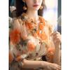 Spring Autumn Embroidery Long Lantern Sleeve Shirt Women Elegant Fashion All-match Blouse Female Buttons Top
