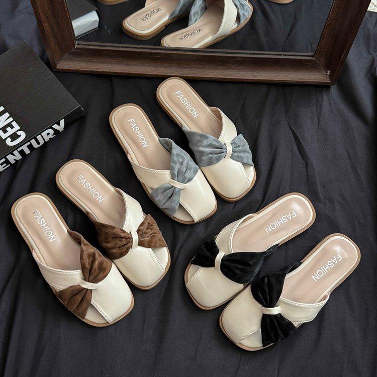 French evening breeze temperament girl campus one pedal slippers outside wearing non-slip flat bottom bag head half drag cool slippers