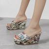 Large size wedge slippers women 20024 summer embroidered slippers women