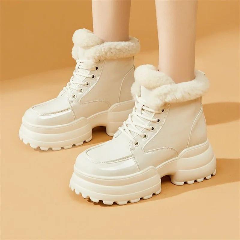 Fashion Winter Women's Boots Plush Comfortable Warm Waterproof Platform Height Increasing Ankle Boots Anti Slip Outdoor Short Boots2025