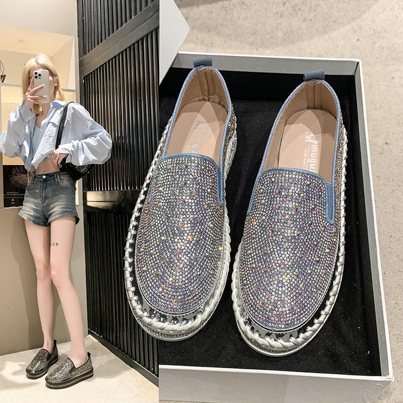 Spring and autumn new muffin platform single shoes large size round head colored rhinestone flat bottom lazy shoes women