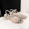 Fashion Silver Rhinestone Sequin Sandals for Women in Summer 2025, Square-toed, Thick-heeled, One-strap, Transparent Crystal High Heels