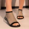 Fashion Summer Woman Fishnet Flat Sandals Bling Rhinestone Mesh Sandals Lightweight Hollow Out Shoes Woman Plus Size Zapatos De Mujer