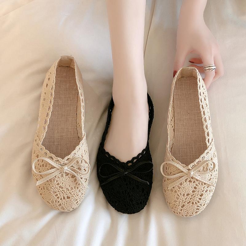 Fashion 2024 Summer Spring and Summer Women's Ballet Flat Comfortable Mesh Shoes Hollow Lace Breathable Lazy Low-top Shoes for Women