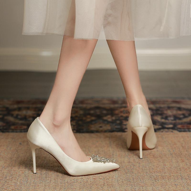 White rhinestone high heels autumn and winter new pointed head shallow mouth stiletto dinner bride wedding shoes