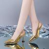 Fashion 2025 Summer Women's Gold Silver Pointy Toe High Heels Slingback Pumps Big Size 42 Elegant Sandal Office Lady Shoes