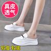 Summer new women's sandals leather invisible height increase half slippers women hipster casual bag head slippers women