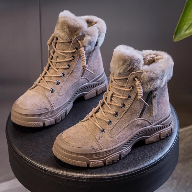 Fashion Cozy Warm Plush Ankle Boots Women Fashion Lace-up Side Zip Designer Boots Winter Casual Thick-soled Snow Boots Zapatos De Mujer