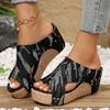 Fashion Women's Fashion Denim Wedge Heel Sandals Peep Toe Chunky Platform Sandals for Woman Summer 2025 Thick Bottom Non Slip Slippers