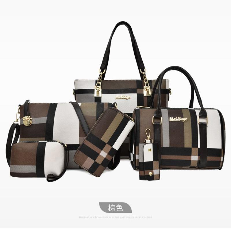 Mother and child bag six-piece women's bag new large-capacity plaid bag single shoulder crossbody simple handbag