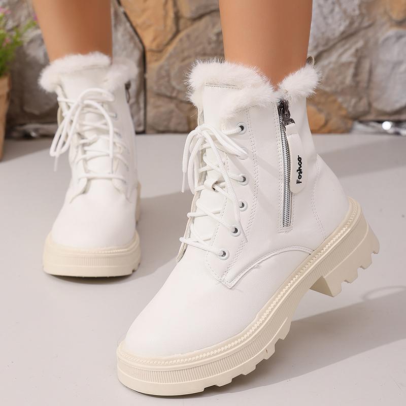 Fashion Women's Autumn Winter Ankle Boots Thick Sole Warm Plush Cotton Shoes Woman Fashion Black White Pu Leather Platform Botas Mujer