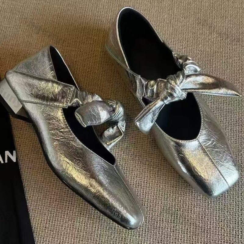 Fashion 2025 New Fashion Summer Bow Flats Women's Soft Sole Lightweight Slip on Mary Jane Shoes Comfortable Square Toe Casual Shoes