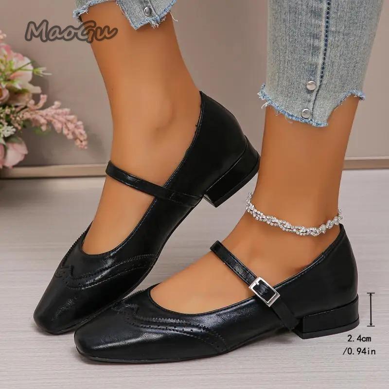 Fashion Size35 43 Mary Janes Shoes Woman 2025 Elegant Square Toe Ankle Strap Ballet Flats Women Comfortable Pumps Casual Single Shoes