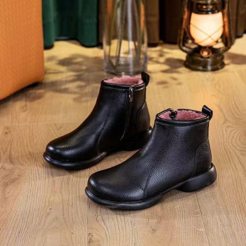 Retro round head medium heel short Martin boots autumn and winter new versatile fashion boots velvet leather boots