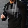 Vintage Men's Long Sleeve T-shirt 3D Stripe Gradient Printed Tshirt Harajuku Oversized Tops Casual Men's Outdoor Jogging T-Shirts