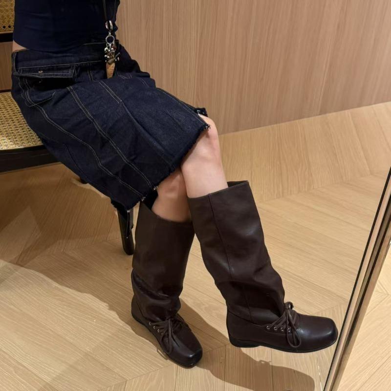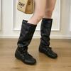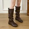 Cowhide version thick-soled thick-heeled inner heightened stacking boots women's new square-head trouser boots western knight boots