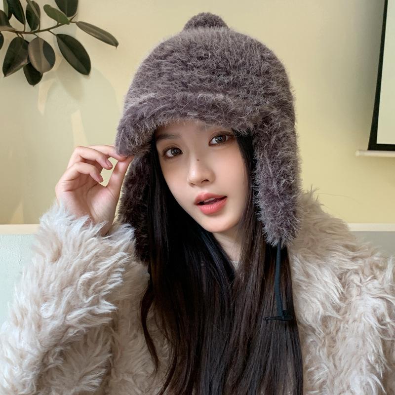 Winter Hat Women's Thickened Warm Ski Hat Ear Protector Duck Tongue Lei Feng Hat Fashionable Solid Color Plush Hat