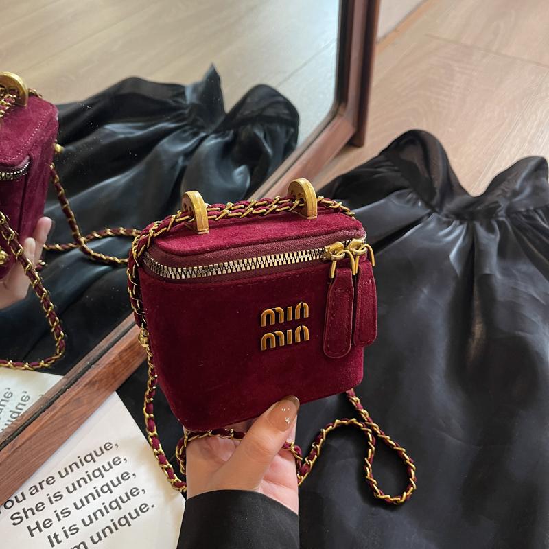Frosted new chain miu French box bag niche texture women's small square bag personalized shoulder messenger bag