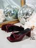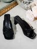 French high-heeled slippers women's 2025 new summer outer wear square head thick heel one-word drag temperament bow cool slippers