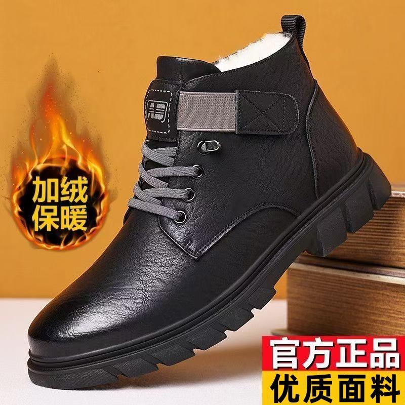 Žieminiai vyriški batai su vilnos pašiltinimu, šilti medvilniniai batai aukštu aulu, medvilniniai odiniai batai vidutinio amžiaus ir vyresnio amžiaus vyrams, lauko sniego batai, Martin batai vyrams