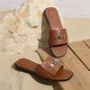 Flat-bottomed slippers women's outer wear 2025 spring and summer new lock niche design Roman sandals fairy wind one-word drag