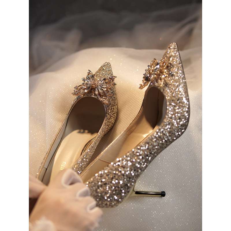 Zhang Qingqing same bow wedding shoes main wedding dress rhinestone crystal shoes bride shoes adult ceremony high heels 2025