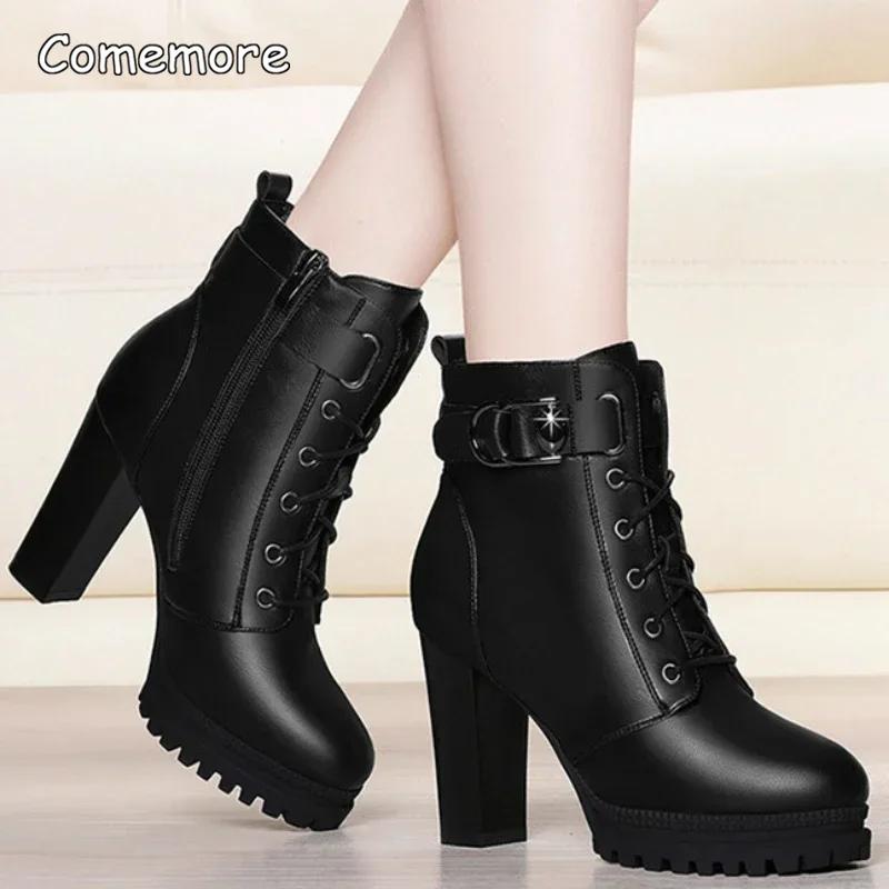 Madingi rudeniniai moteriški batai su platforma Nauji plius Velvet stambūs aukštakulniai auliniai batai moterims žieminiai trumpi moteriški batai