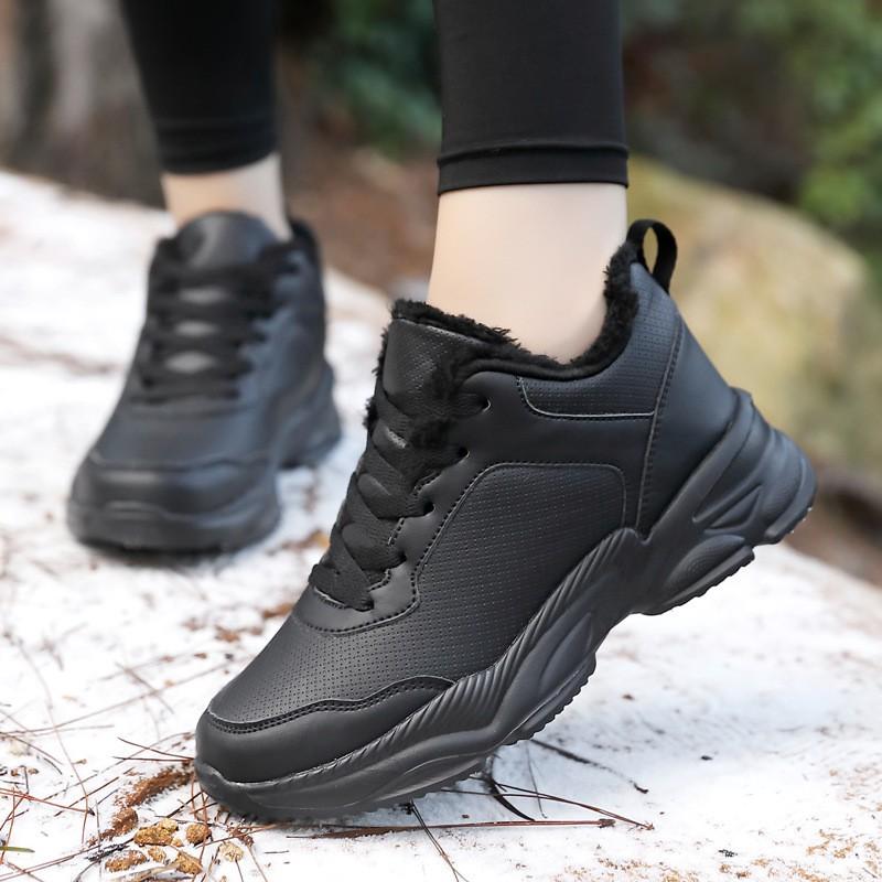 Fashion Autumn Winter Leather Sneakers Black Casual Shoes Women Non-slip Lace-up 2025 Fashionable Comfortable Waterproof Sports Shoes