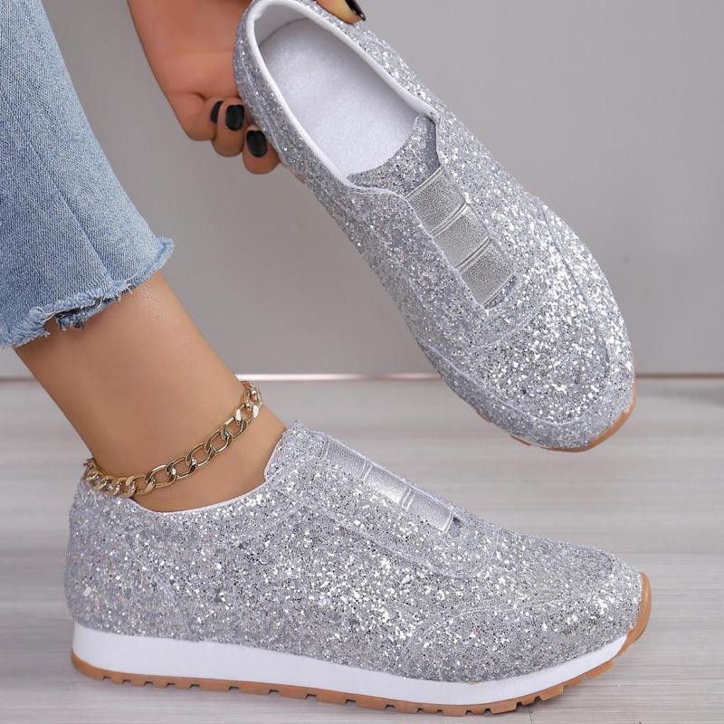 Fashion Women's Silver Glitter Sneakers For Women Bling Shoes Slip-on Casual Trend Platform Sport Shoes Woman Non-slip Vulcanize Shoes