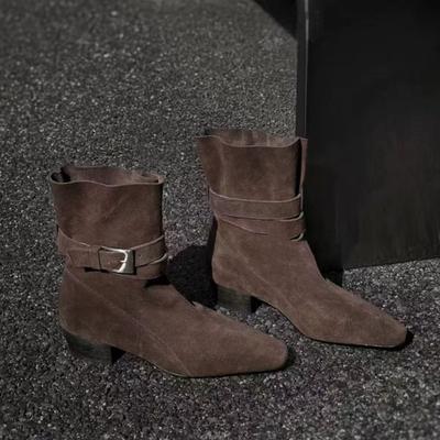 Fashion Hot Sale Leather Suede Western Ankle Boots Women Pointed Toe Kitten Heels Short Boots Winter Cowboy Knight Boots Woman