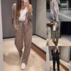Moteriškas mados dviejų dalių vienspalvis ilgomis rankovėmis ir užtrauktuku džemperis, kelnės, laisvalaikio komplektas