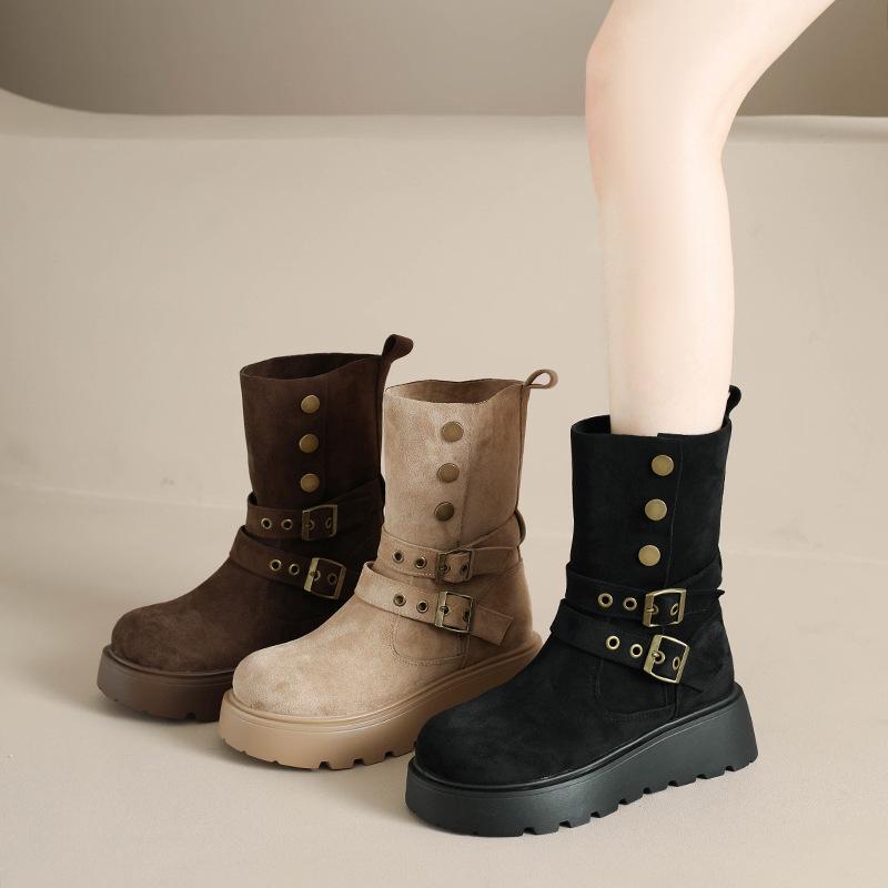 British style platform heightening Martin boots women's new small slim medium tube knight short boots in autumn and winter 2025