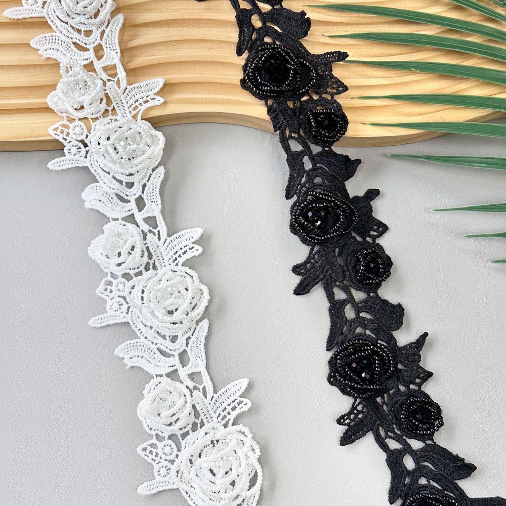 Black And White Handmade Beads Three-Dimensional Flower Embroidery Barcode Clothing Skirt Shirt Decoration Diy Jewelry Lace