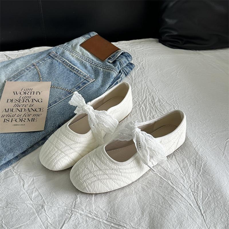 2025 summer new shallow mouth versatile bow casual round head flat sole single shoes women's soft sole Mary Jane ballet shoes