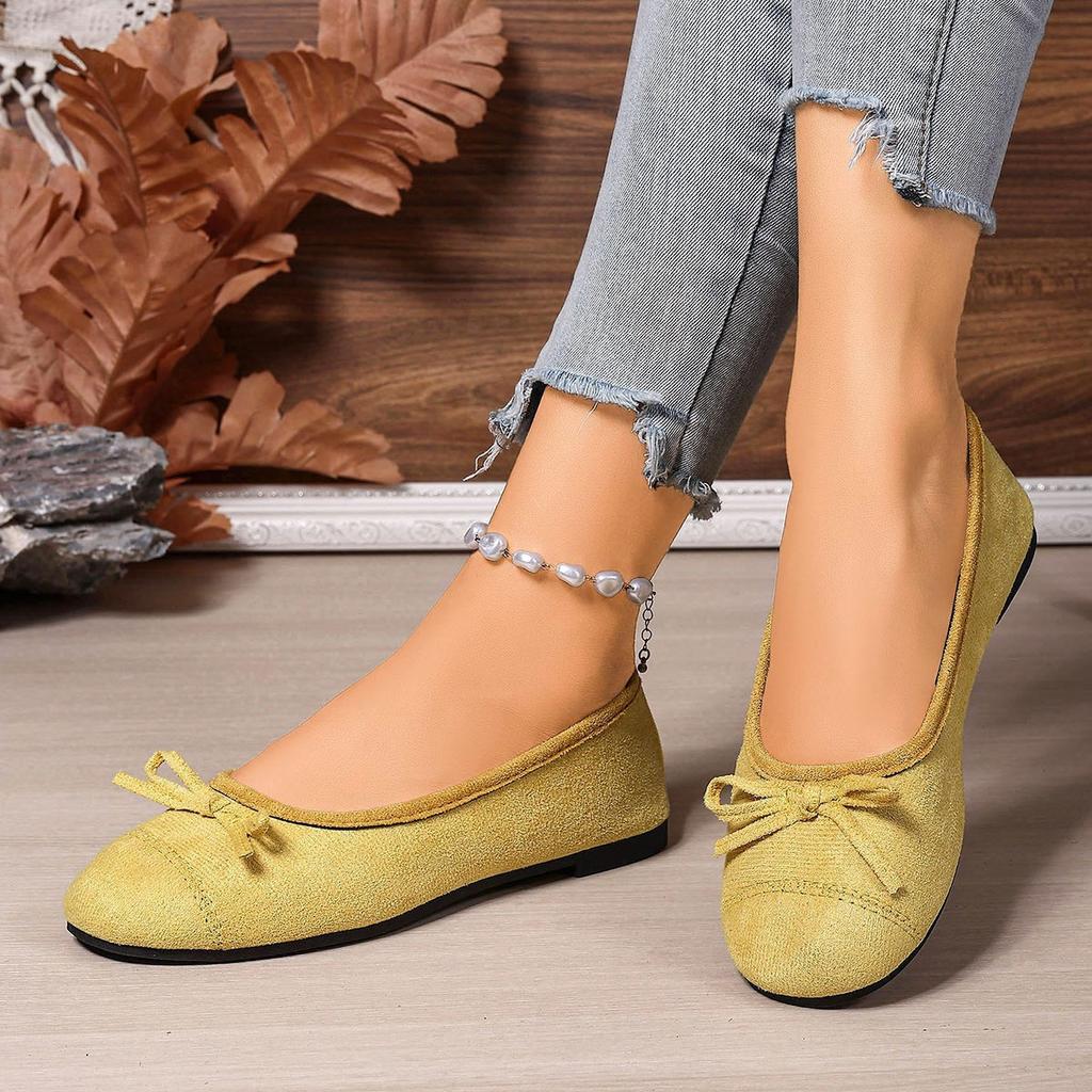 French single shoes women's bow flats suede one-pedal lazy shoes 2025 fairy wind beanie shoes size 43