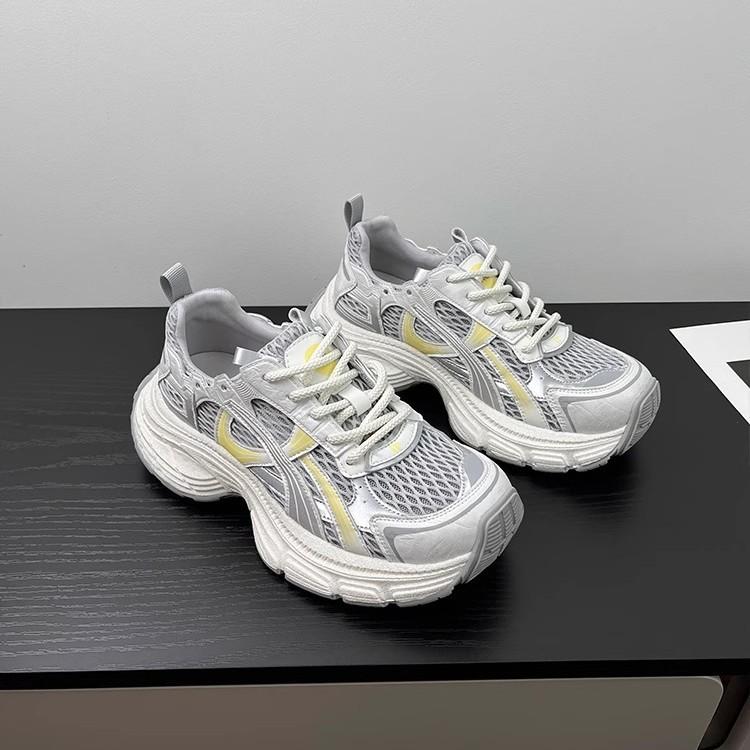 Leather platform dad shoes women's 2025 new summer breathable mesh casual sports shoes versatile running shoes women's shoes