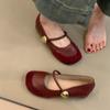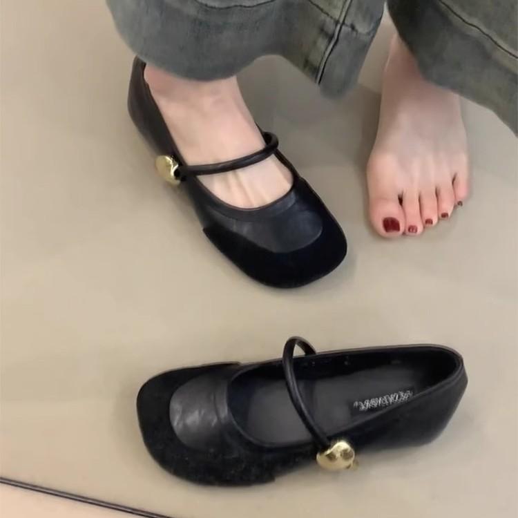 Soft leather version! French retro splicing Mary Jane shoes women's spring and autumn new one-word single shoes with shallow mouth inner height incr