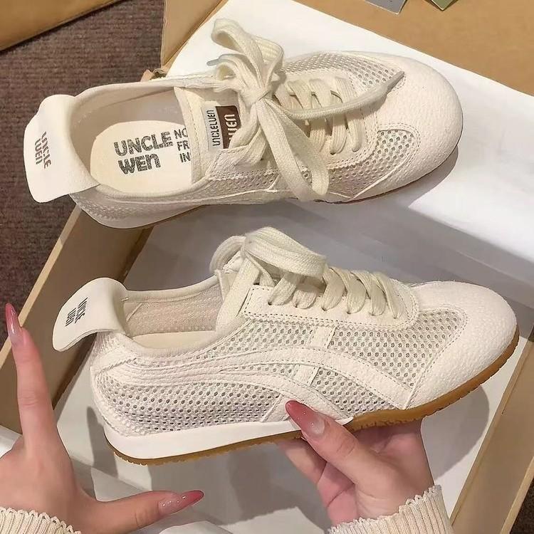 Leather casual sports flat bottom running thick baseplate shoes summer thin single net soft sole mesh Forrest Gump training shoes women