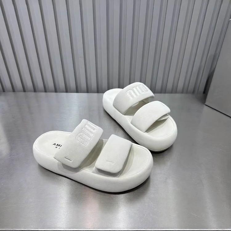 Thick-bottomed muffin lightweight Velcro one-word women's outer wear 2025 summer new fashionable versatile bread cool slippers
