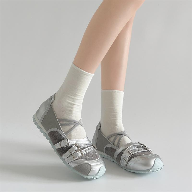 Silver retro ballet style light mouth sports Mary Jane single shoes women's summer 2025 new models with skirts flat-bottomed German training shoes
