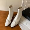 Bow Skinny Elastic Boots 2025 Autumn New Beige Skinny Boots Square Head Back Zipper High Heel Short Boots Women
