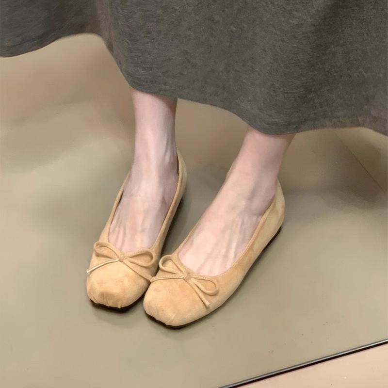 Retro temperament French inner heightening suede ballet single shoes women's autumn 2025 new bow evening shoes