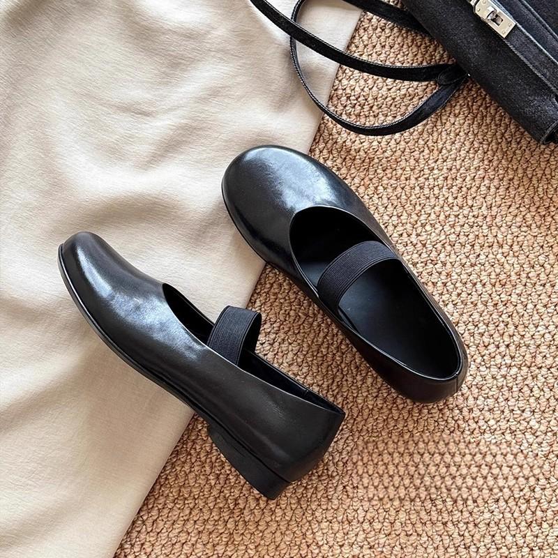 Black single shoes women's flat French retro soft-soled grandma shoes versatile word with shallow mouth ballet Mary Jane single shoes