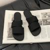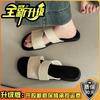 Stylish, simple and versatile linen square-headed open-toed flat-bottomed slippers for women's 2025 summer outdoor wear home beach cool slippers