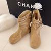 2025 autumn and winter new large size heightened retro fringed stacked small short boots women's round head medium tube pleated Martin boots