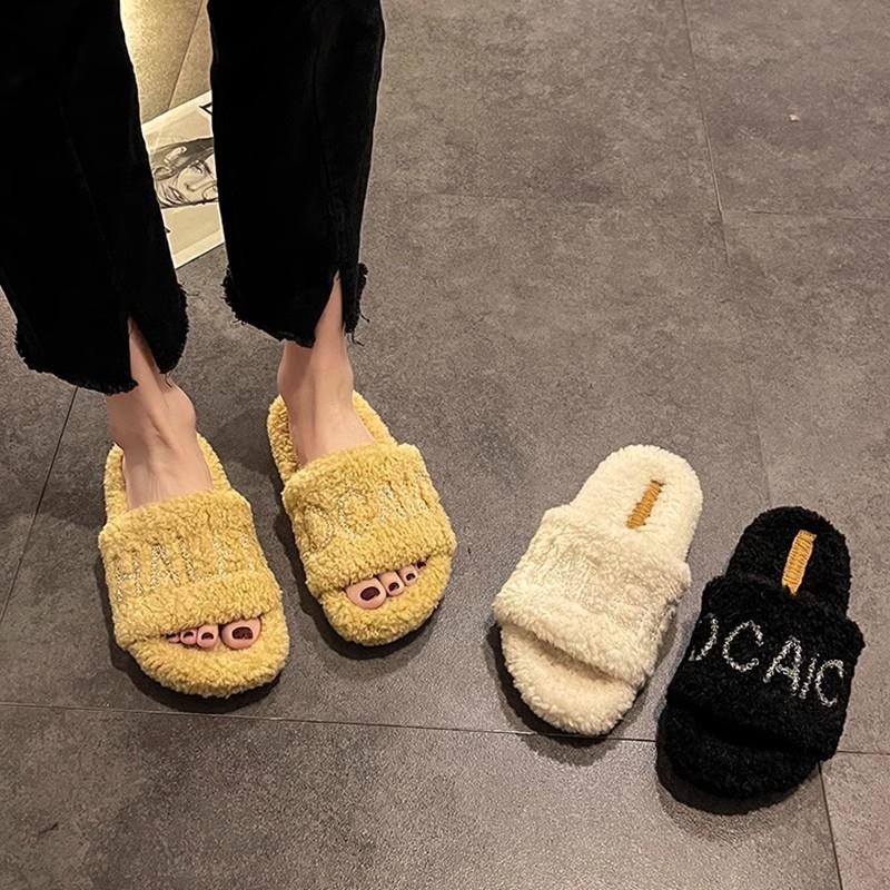 High-end letter fluffy slippers for women in the summer of 2025, new models can be worn outside, comfortable thick-soled heightening one-word slippers