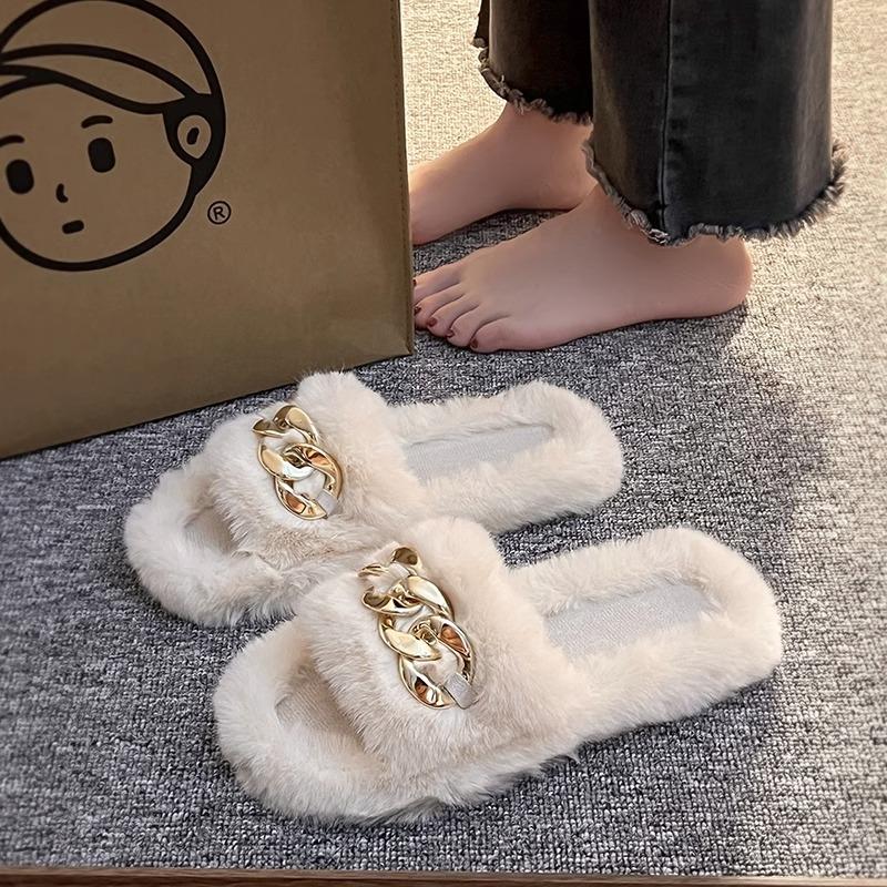 Mao Mao slippers women wear autumn and winter home chain cross home thick bottom increase popular plush slippers spring and summer
