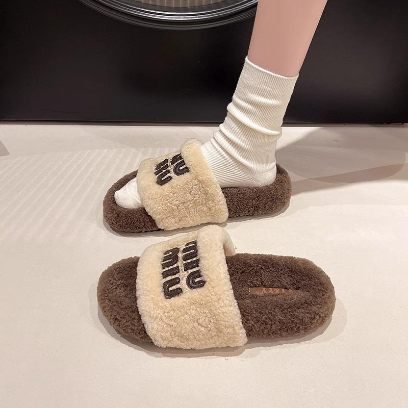 Premium sense explosion thick-bottomed fluffy slippers women's 2025 new versatile small fragrant style letter one-word drag foreign style comfortable
