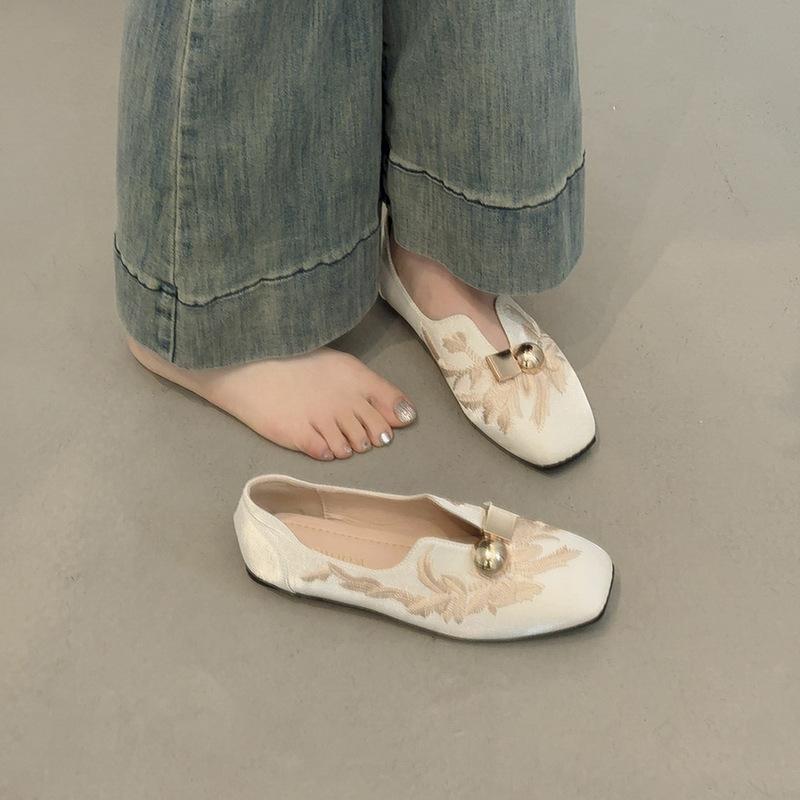 Retro new Chinese style 2025 spring new low-heeled women's shoes versatile square head single shoes women's Doudou shoes flat loafers